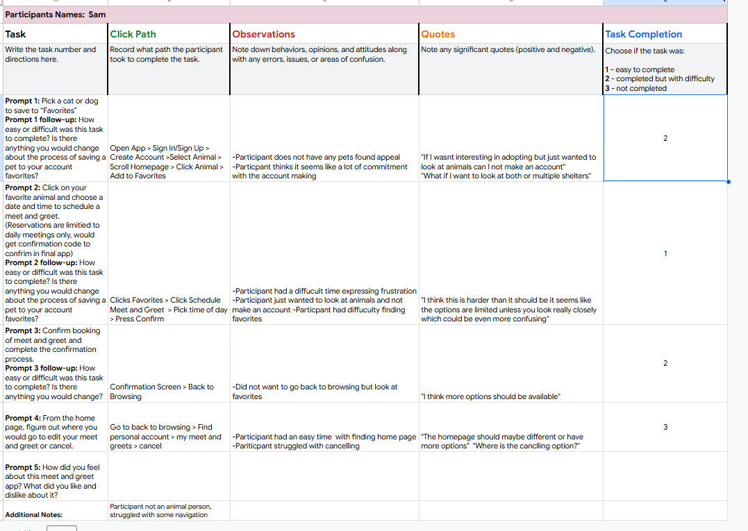 Pups & Purrs is a mobile app targeting potential adopters too busy to check animal shelters in person everyday. Pups & Purrs strives to provide the necessary information such as past housing, allergies, age, breed, and everything else needed for adopters. Pups & Purrs offers flexible meet and greet hours by the day, aims on being hands on for shelter staff and focuses on the accessibility for all kinds of adopters. I focused on navigability by including unique button designs for the user to easily distinguish different sections, and additionally providing a filter system for those who may need a hypoallergenic pet, or already own pets. Moreover the app would include microphone settings for those who struggle with dexterity and support mobile screen readers for those with limited vision. Pups & Purrs focuses on each individual pet updating daily and an enjoyable trouble free user experience.https://www.figma.com/proto/ClLXVFV3XQingeJ6CFf0Tk/Pups-n-Purrs-2?node-id=49-17&t=Q2W0SZlEsKmInDKn-0&scaling=scale-down&content-scaling=fixed&page-id=0%3A1&starting-point-node-id=49%3A17